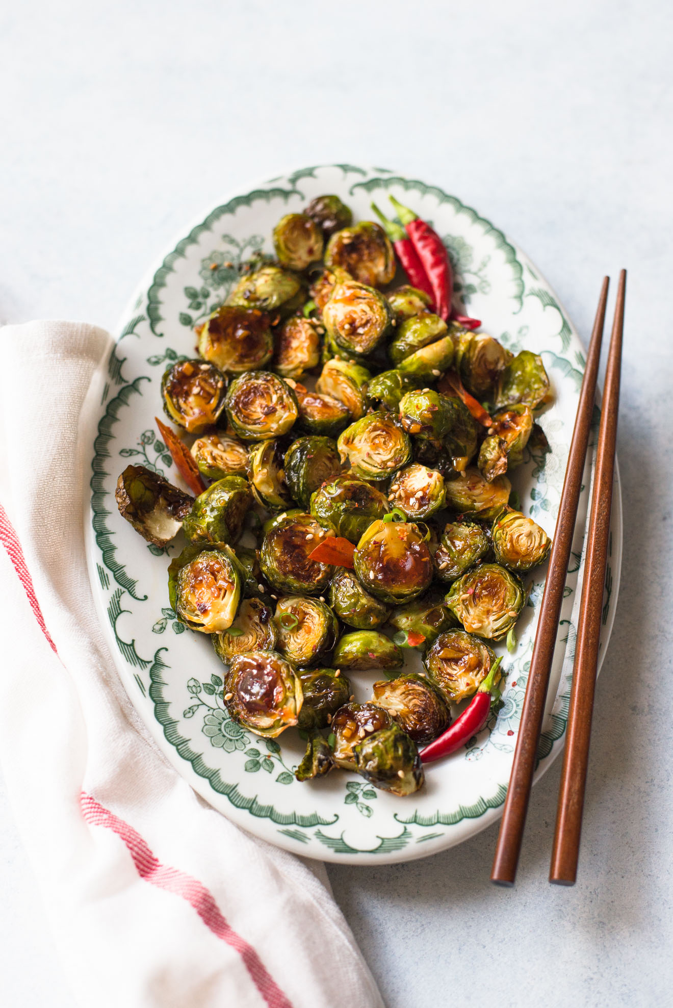MIX BRUSSELS SPROUTS WITH SAUCE: When the brussels sprouts are done, pour them into a large bowl. Pour about 2 to 3 tablespoons of the sauce onto the brussels sprouts and stir. Feel free to add more sauce if you like. If you prepared the sauce ahead of time, and it’s very thick, just warm it up a little again before stirring it with the brussels sprouts.